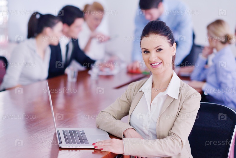 Бизнес-леди на встрече с сотрудниками в офисе