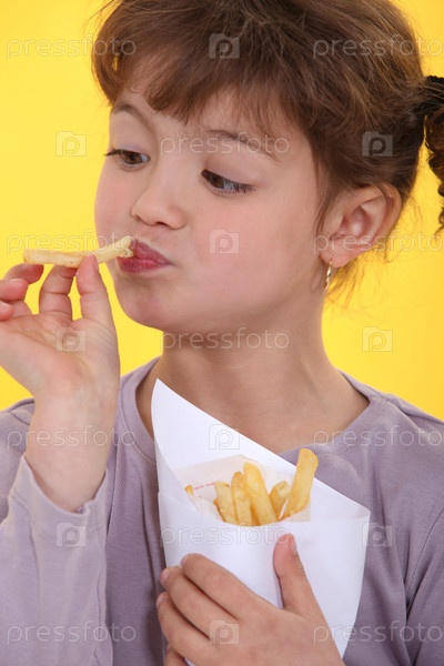 Девочка ест чипсы