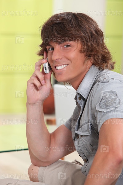 Улыбающийся мужчина говорит по телефону