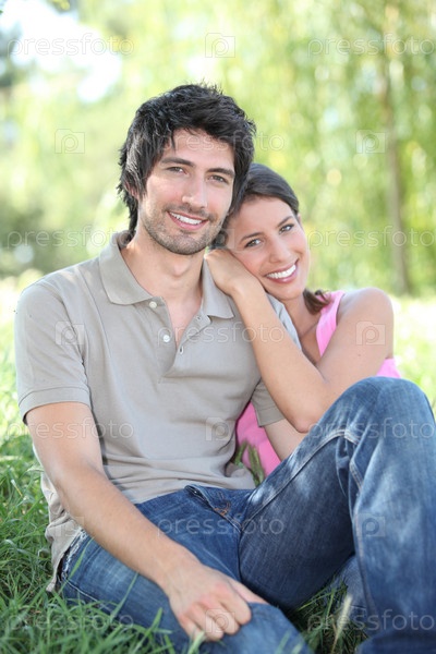 Пара сидит на траве