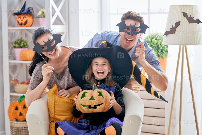 Семья празднует Хэллоуин