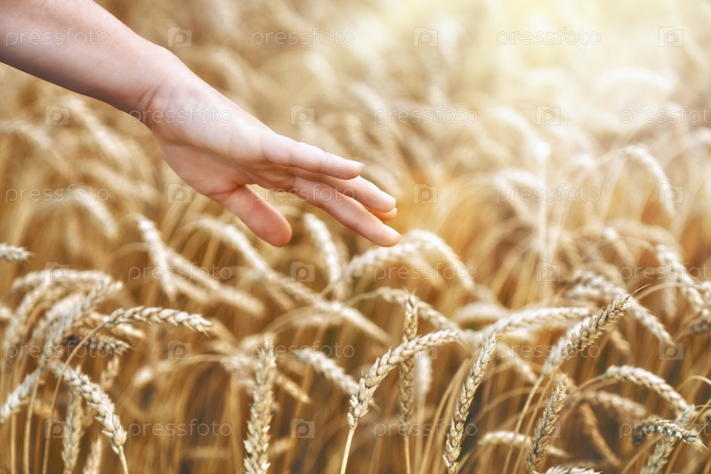 Рука, касающаяся золотой пшеницы