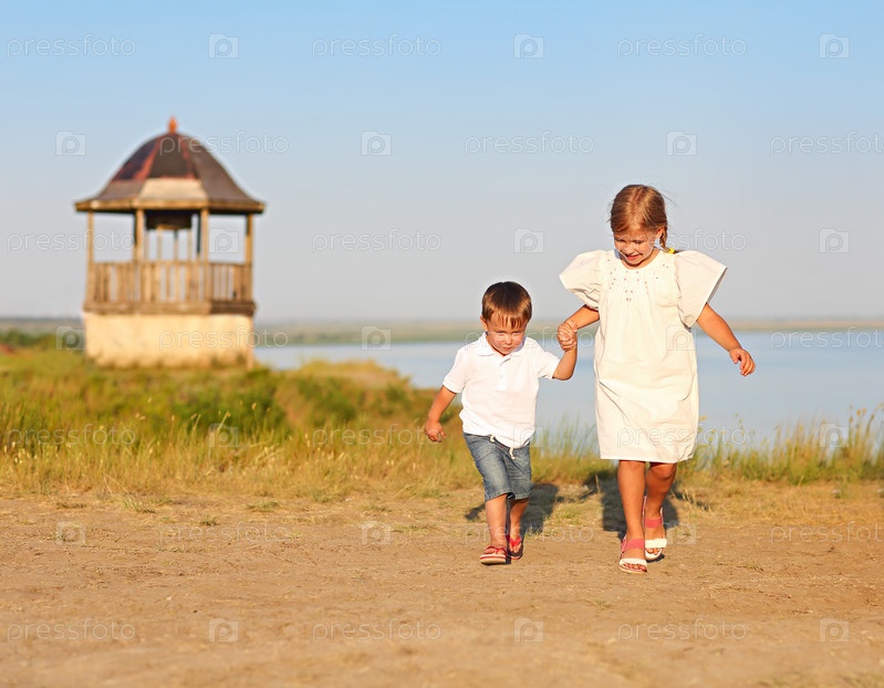 Дети играют и бегают летом