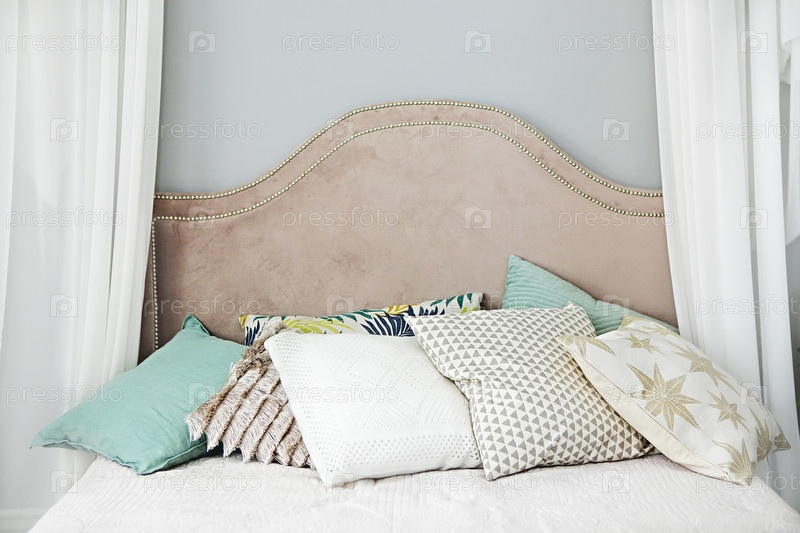 Современная спальня с подушками