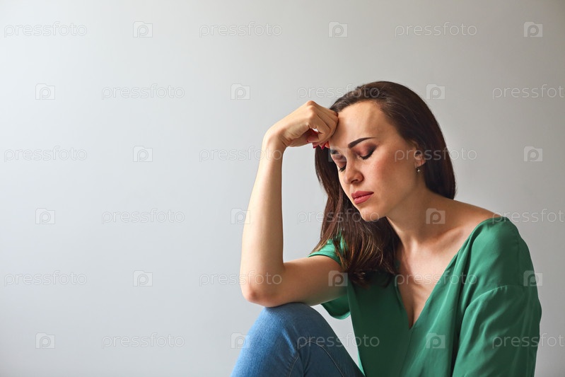 Портрет грустной женщины, которая думает о своих проблемах