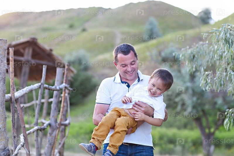 Отец и сын играют вместе