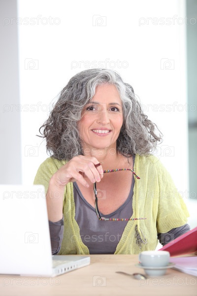 Пожилая женщина с ноутбуком