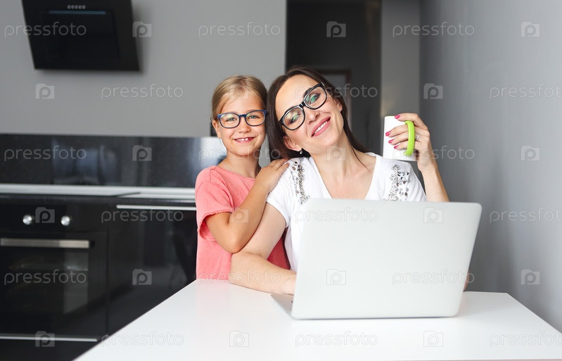Мать, работающая из дома с маленькой дочерью