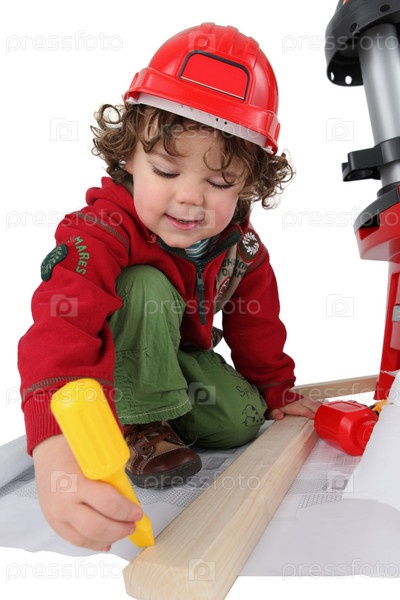 Маленький мальчик, замаскированный под плотника