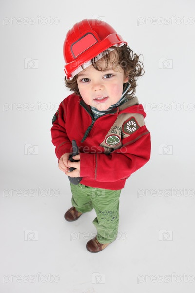 Маленький мальчик, одетый как строитель