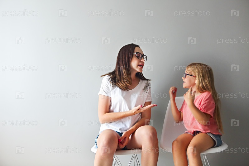 Разгневанная молодая мать в дискуссии со своей маленькой дочерью