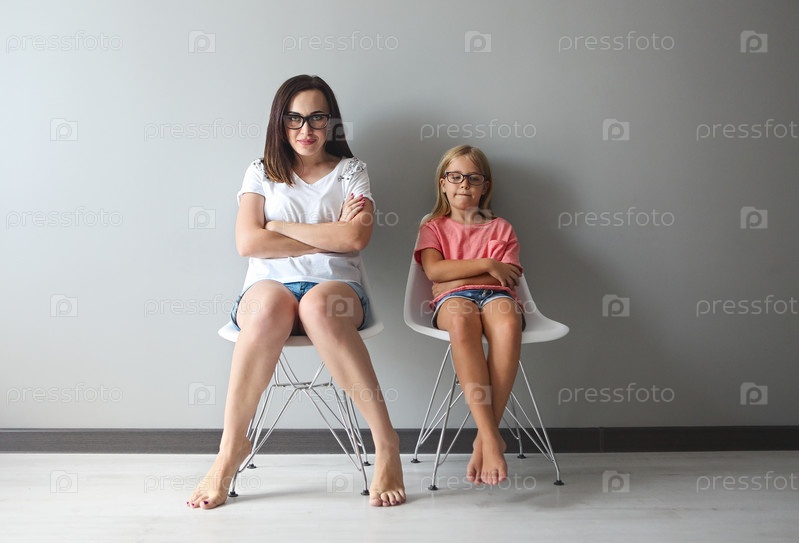 Разгневанная молодая мать в дискуссии со своей маленькой дочерью