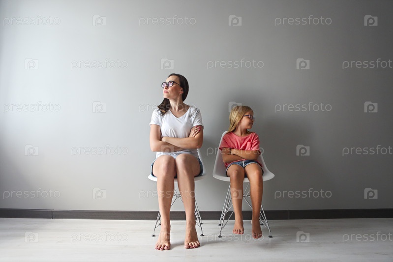 Разгневанная молодая мать в дискуссии со своей маленькой дочерью