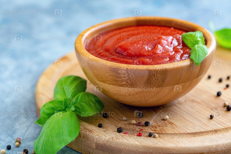 Домашний томатный соус и свежий базилик