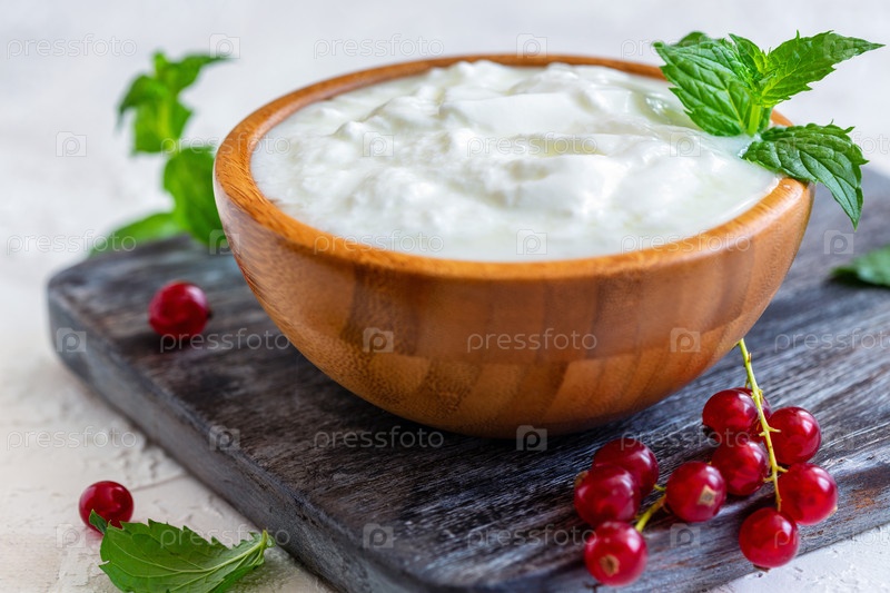 Домашний йогурт в деревянной миске