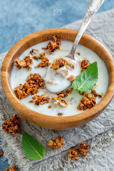 Естественный йогурт с овсяными хлопьями и орехами в меде