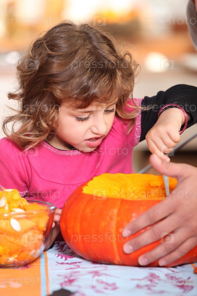 Девочка вырезает тыкву