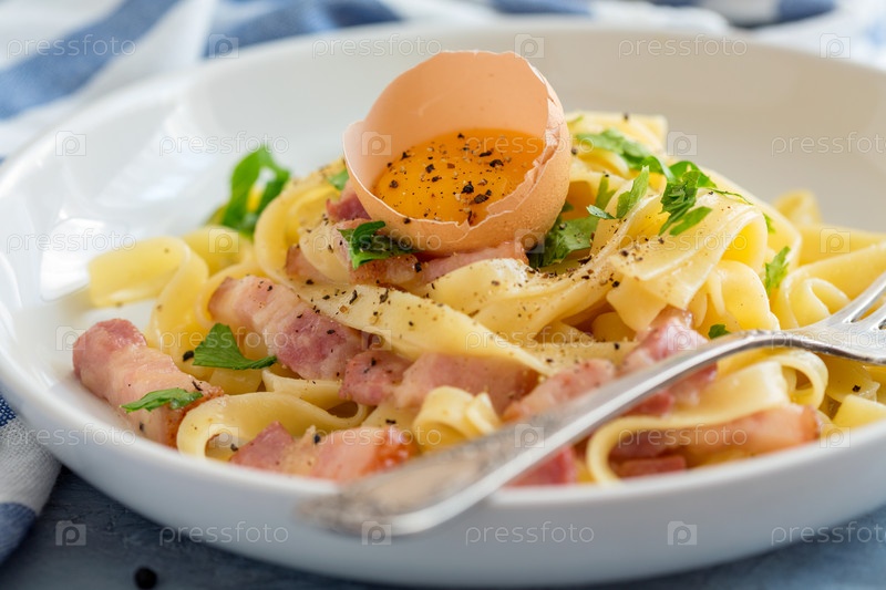 Паста Carbonara бекон, яичный желток и черный перец
