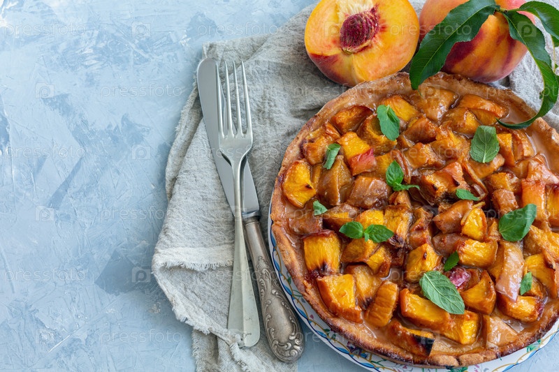 Домашний пирог с персиками и свежей мятой