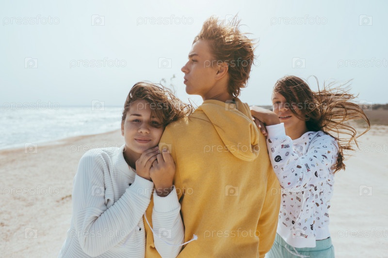 Группа подростковых друзей на свежем воздухе