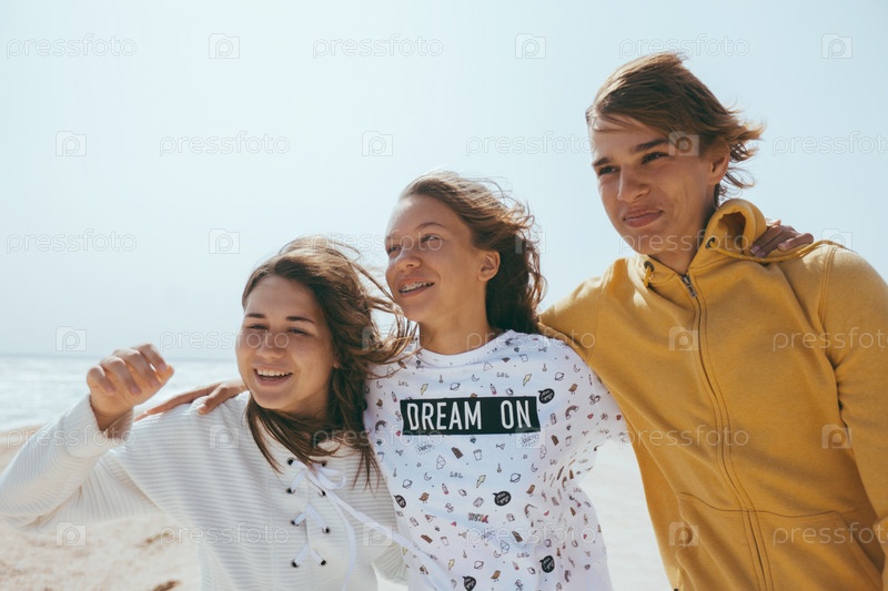 Группа подростковых друзей на свежем воздухе
