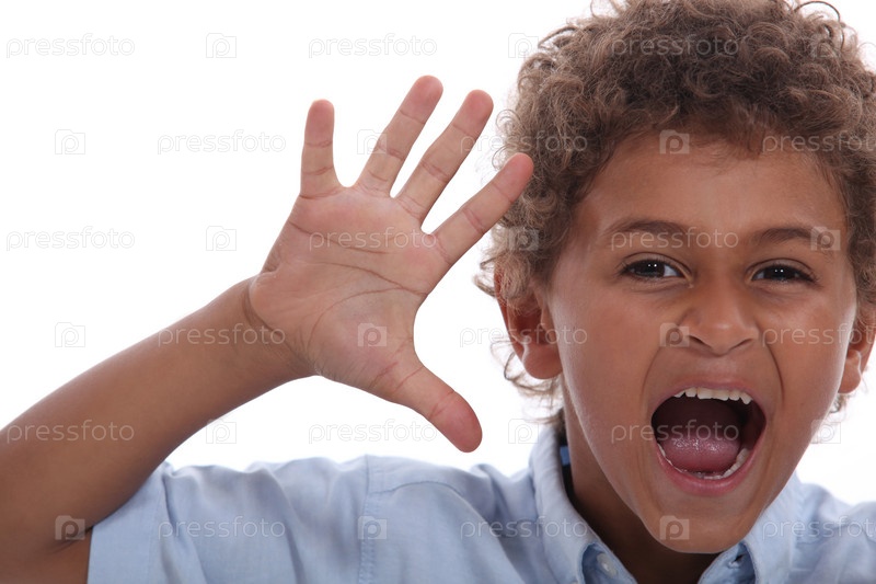 Маленький мальчик с поднятой рукой