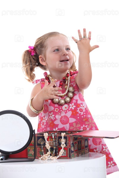 Девочка играет с мамиными украшениями