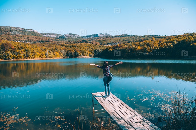 Человек, сидящий на пирсе у озера