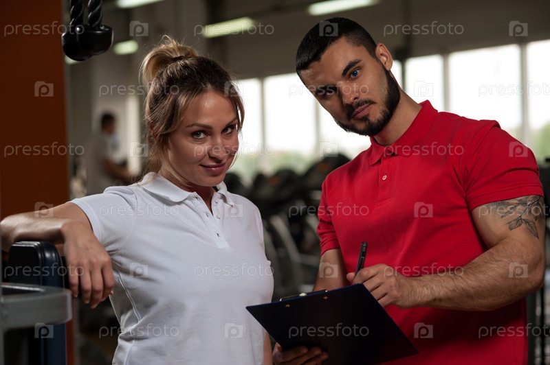 Женщина средних лет тренируется с тренером в тренажерном зале