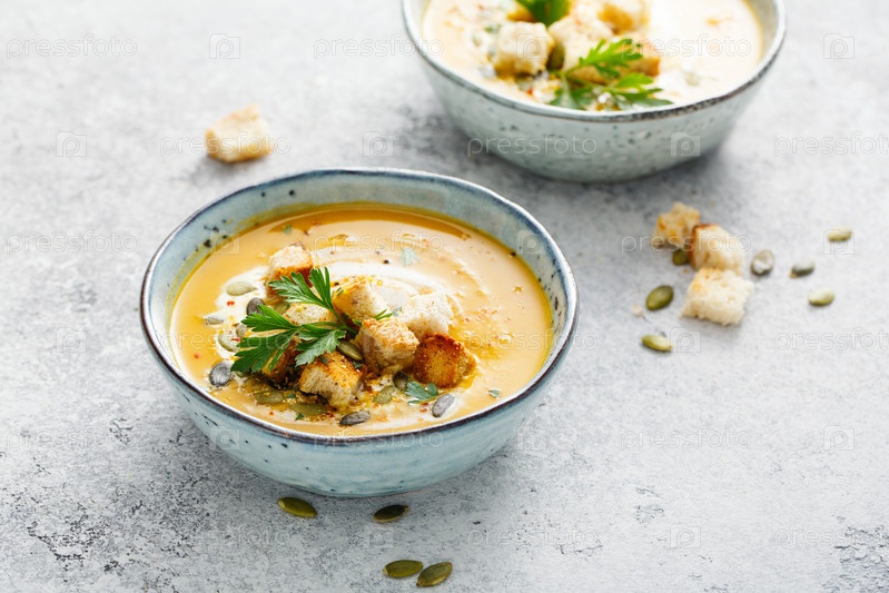 Тыквенный и морковный суп со сливком и петрушкой