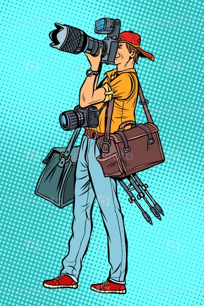 Профессиональный фотограф с камерой и оборудованием