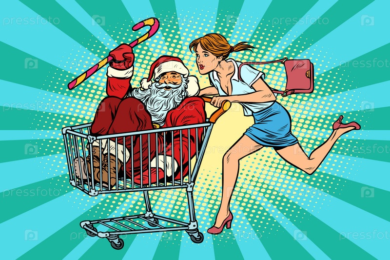 Рождественская распродажа.Женщина купила Санта-Клауса
