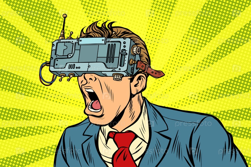 Бизнесмен в очках VR кричит