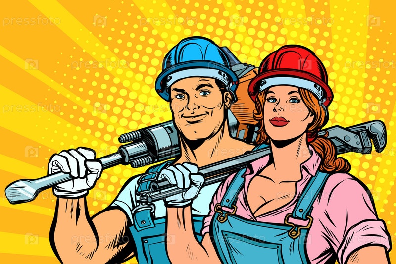 Сильные рабочие, мужчины и женщины. день труда. равенство