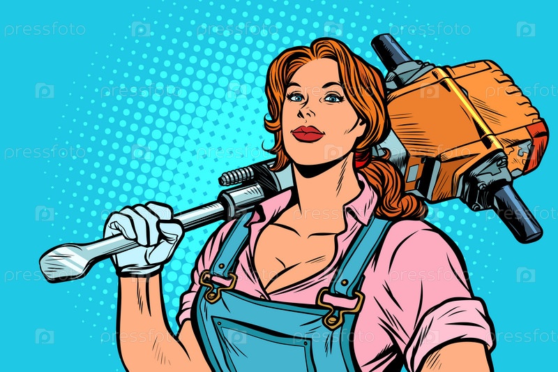 Женщина дорожный рабочий Строитель с джекмамером