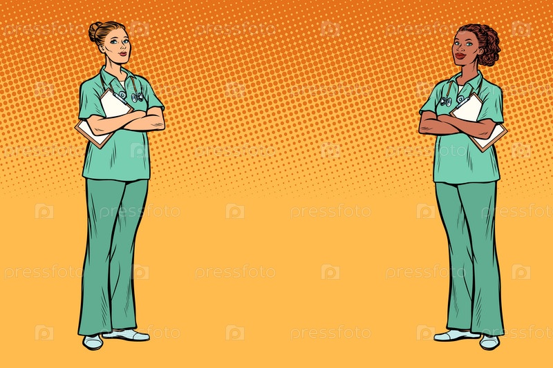 Поп-арт Мультиэтническая группа Две медсестры Медицина и здоровье обратно
