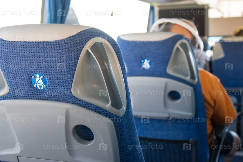 Концепция транспорта, туризма, дорожных поездок и оборудования - интерьер и сиденья туристического автобуса