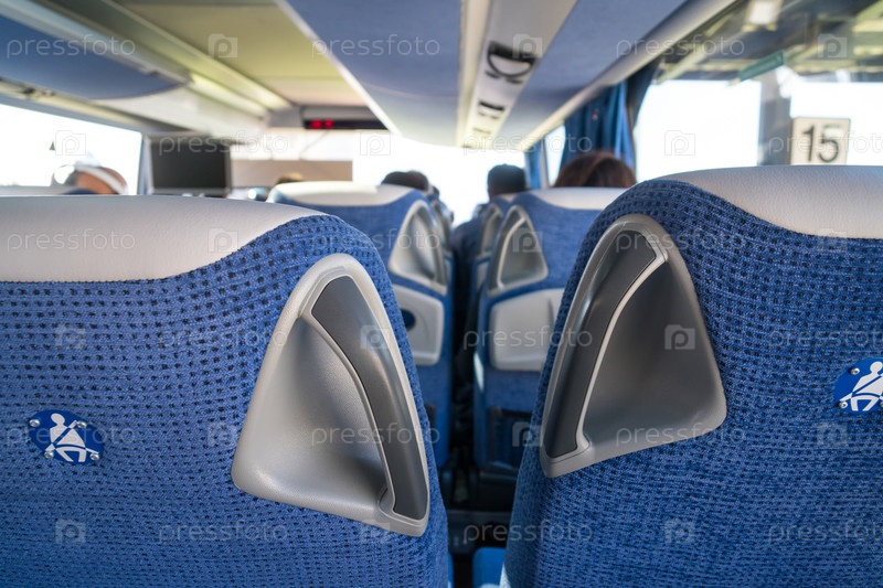 Концепция транспорта, туризма, дорожных поездок и оборудования - интерьер и сиденья туристического автобуса