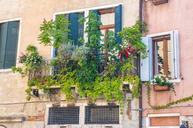 Дома с цветами на окнах в Венеции