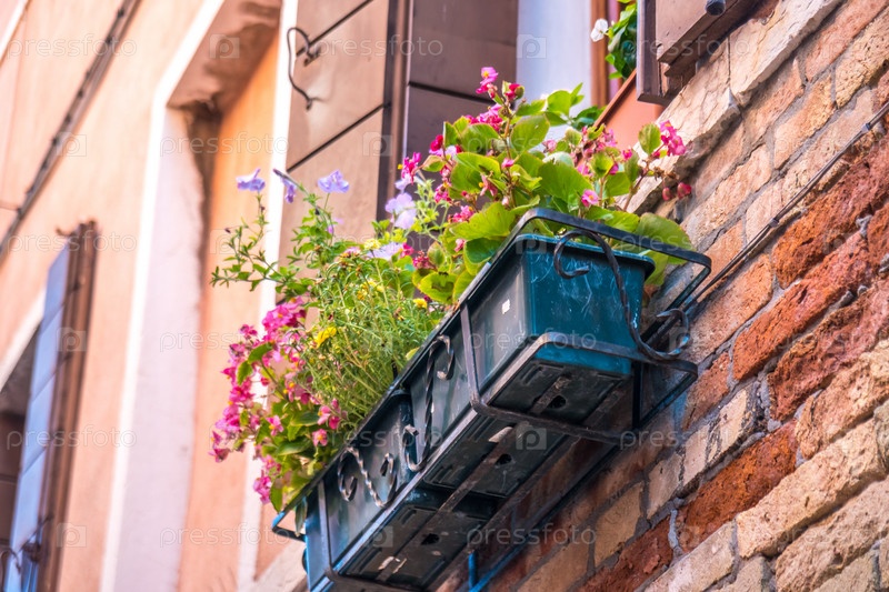Дома с цветами на окнах в Венеции