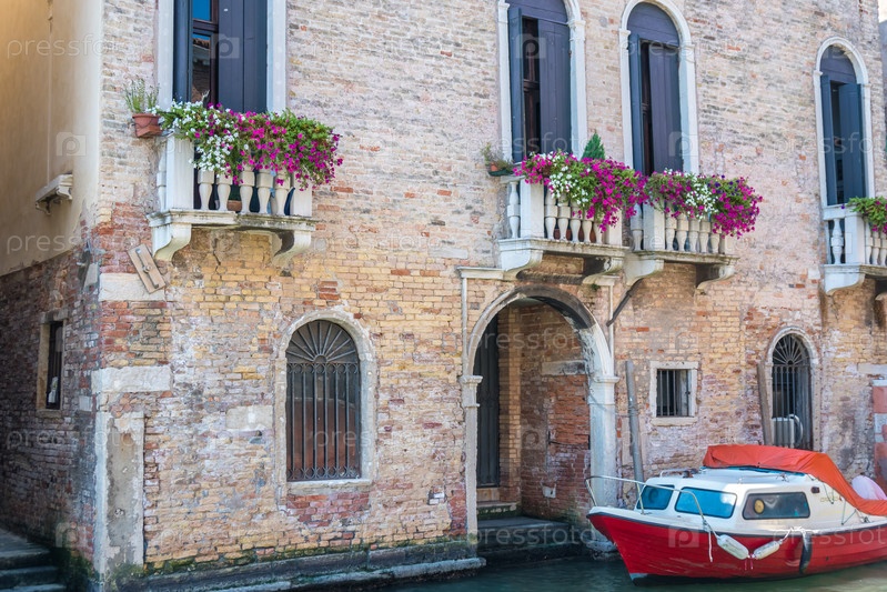 Дома с цветами на окнах в Венеции
