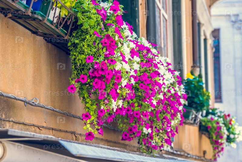 Дома с цветами на окнах в Венеции