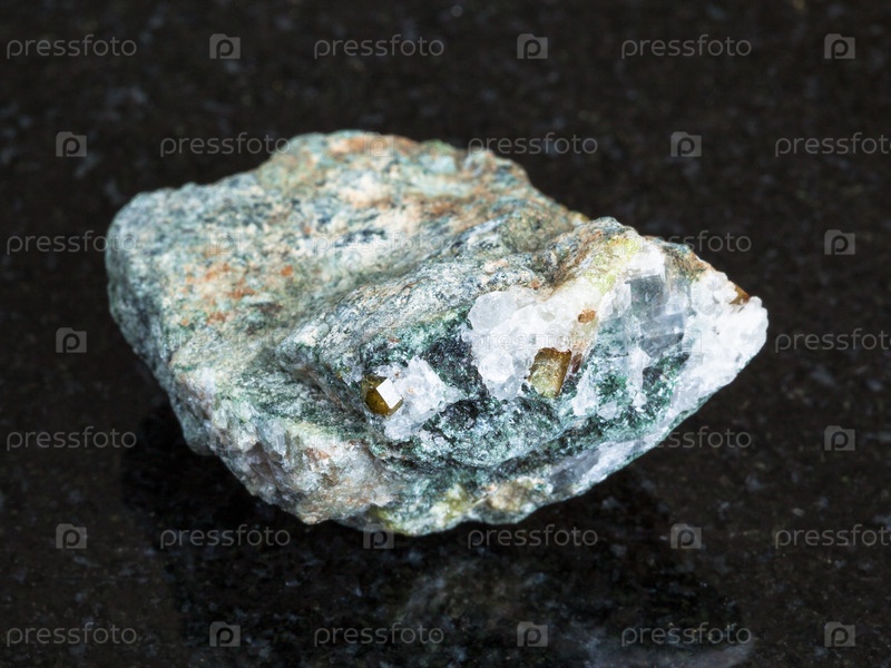 Кристаллы хризоберила в сырой бериловой породе на черном