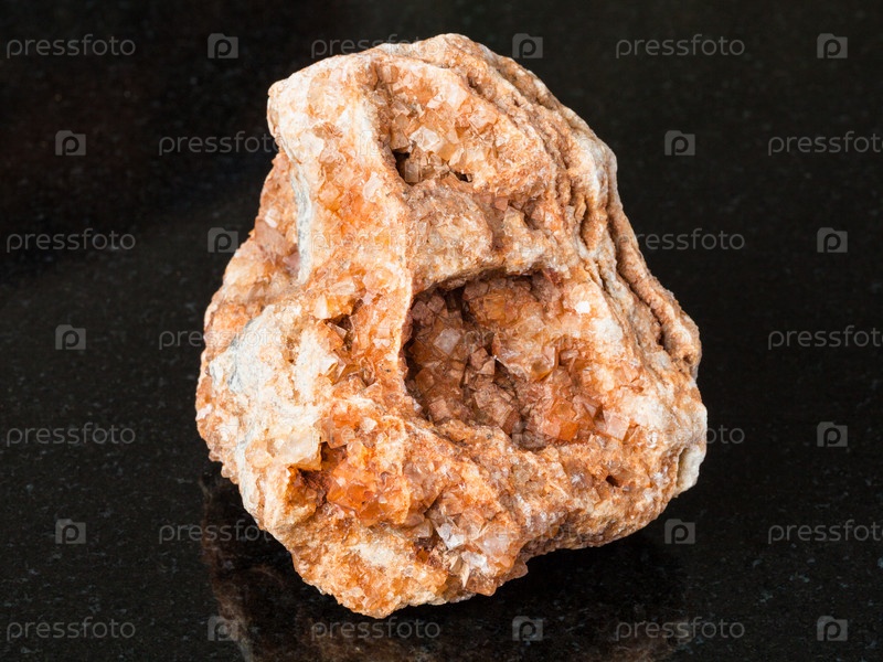 Вулфенитовые кристаллы в скале на черном
