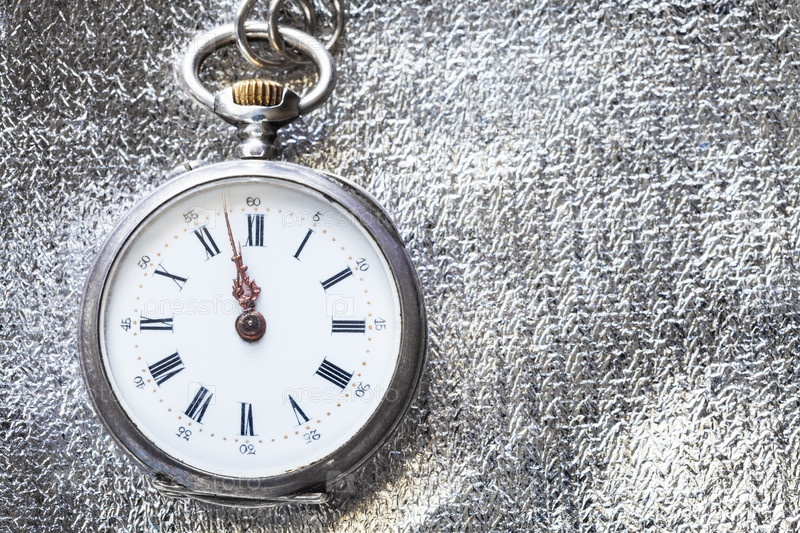 Винтажные карманные часы на серебряном фоне