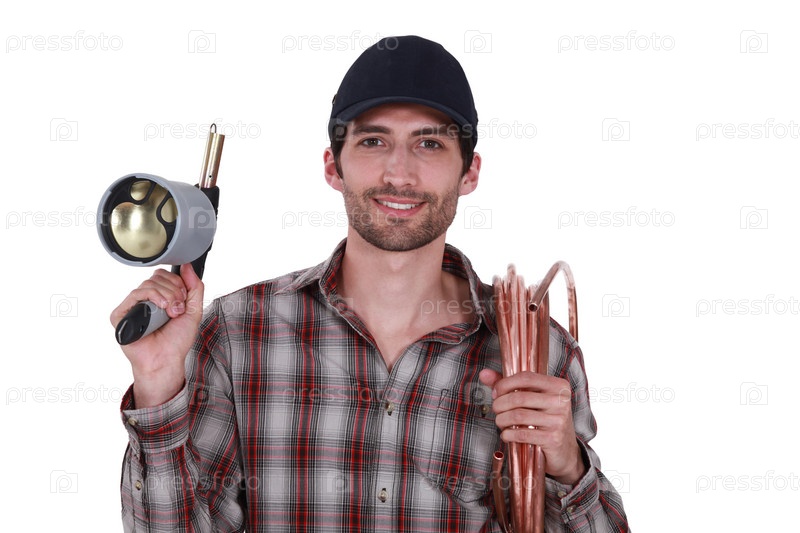 Сантехник с паяльной лампой и медными трубами