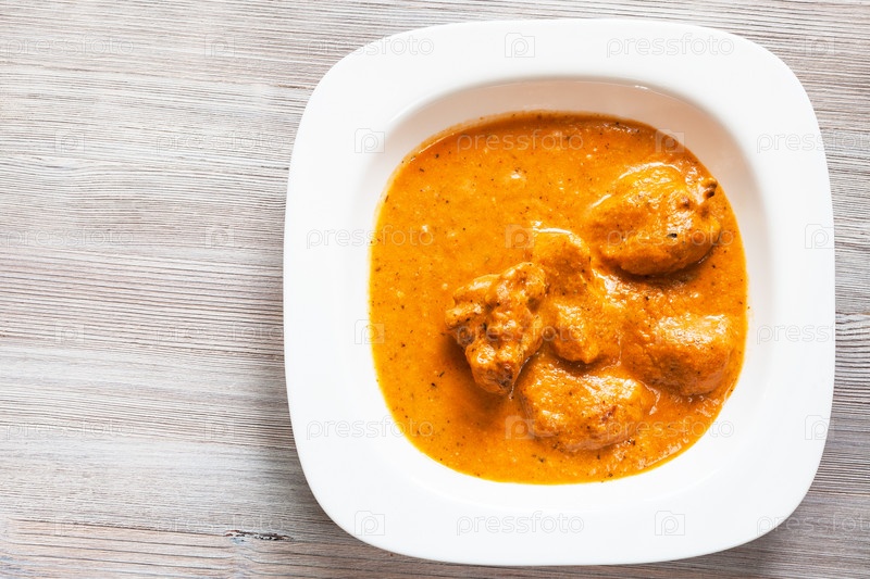 Murg Makhan Masala куриные кусочки на деревянной доске