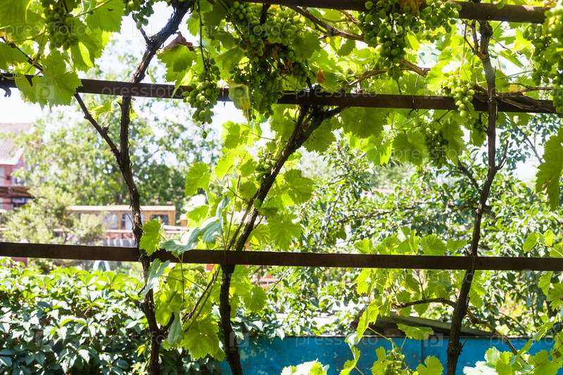 Тенистый виноградник на заднем дворе загородного дома