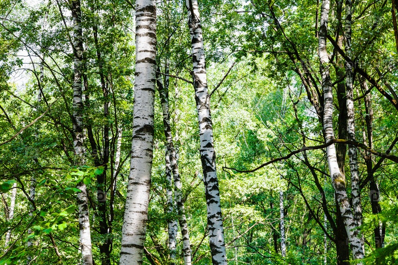 Березовые деревья в зеленом лесу в солнечный летний день