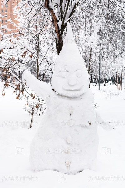 Снеговик в общественном городском парке города Москвы